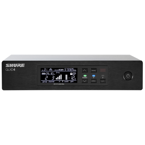 Half-rack QLXD4 Digital Wireless Receiver quickly finds open frequencies and deploys them to transmitters via the one-touch sync function.Works with QLX-D&trade, Digital Wireless SystemsWith transparent 24-bit digital audio quality and incredibly efficient RF spectrum usage, the QLXD4 Digital Wireless Receiver combines professional features with streamlined setup and