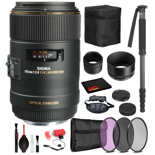 Sigma 105mm f/2.8 EX DG OS HSM Macro Lens for Nikon F with Bundle Includes: Pro Series Monopod, 3PC Filter Kit + More