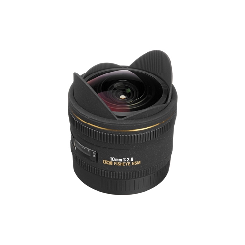 Fisheye lens with close up ability designed exclusively for use with APS-C size digital SLR cameras The autofocus 10mm f2.8 HSM EX DC fisheye lens is designed for use with digital SLR cameras equipped with APS-C size image sensors. The Nikon version produces a diagonal angle of view of 180 degrees for Nikon. The diagonal field of view of this f