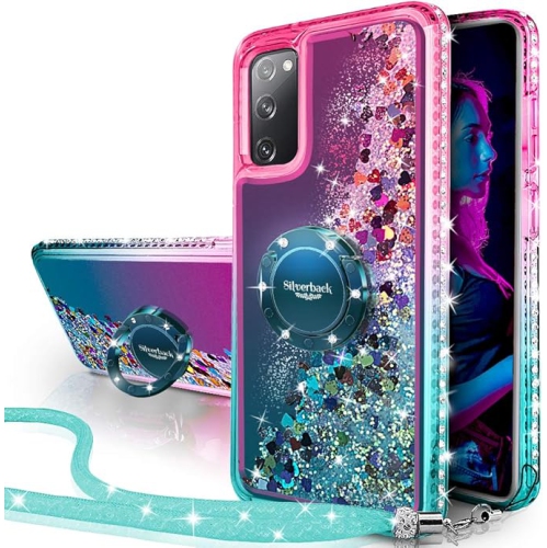 Silverback for Samsung Galaxy S20 FE Case with Ring Kickstand Lanyard, Moving Liquid Glitter Sparkle Holographic, Girls Women Bling Diamond Ring Protective Cover for Galaxy S20 FE