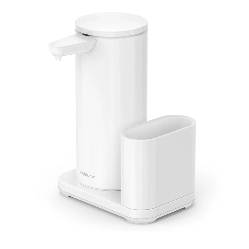 Simplehuman 14 oz. sensor pump with caddy, high-grade white steel (sample soap pouch included)