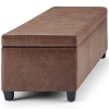 Simpli Home Avalon Faux Leather Storage Ottoman Bench in Distressed Umber Brown