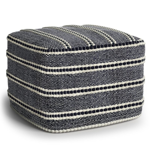 Simpli Home Corrie Boho Square Woven Pouf in Navy and White