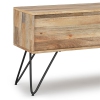 Clean-lined design meets industrial chic with the Hunter 68” TV Media Stand. Hand crafted with a combination of solid Mango Wood and sturdy metal hairpin legs. The open shelving and hidden storage compartments make it easy to stay organized and wire free. Ideal for storing gaming and media accessories. Perfect for TV’s up to 70 inches this media unit brings function and style to any den or living room.Features : Finish: NaturalMaterial...