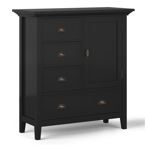 You like to be neat and tidy...that's good, so do we. It is for this reason we designed the Simpli Home Redmond Medium Bedroom Chest. Four drawers and one cabinet conveniently hold your personal items offering an abundance of versatility to effortlessly organize by design and store away anything you wish to remain hidden...your secret is safe with us. This flexible and functional piece can be used in just about any room in your home.Features : ...