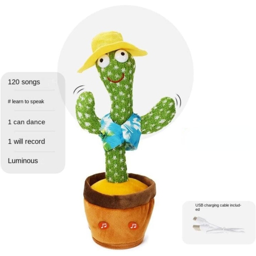 Singing and Dancing Cactus Plush Toy - Interactive Talking, Recording, Lighting, Dancing, USB Rechargeable, 120 Songs - Fun Gift for Kids (Hawaiian)