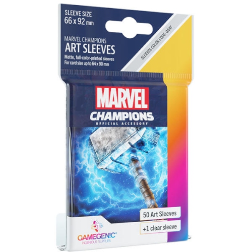 Marvel Champions Art Sleeves â ThorProtect your deck with the Marvel Champions Art Sleeves â Thor. Featuring bold and dynamic artwork of Thor and his legendary hammer, Mjölnir, these premium sleeves...
