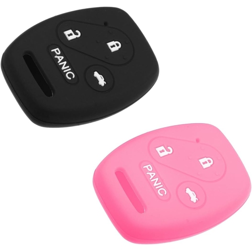 Smart Key Fob Cover Case 4 Buttons Skin Protector for Honda Accord Civic CR-V Element Pilot Silicone Black Pink (Pack of 2) Auto Accessories