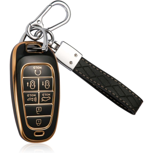 Smart Remote Key Fob Cover, Soft TPU Car Key Case 7 Button with Keychain 2024 Key Fob Cover for Hyundai (Black)