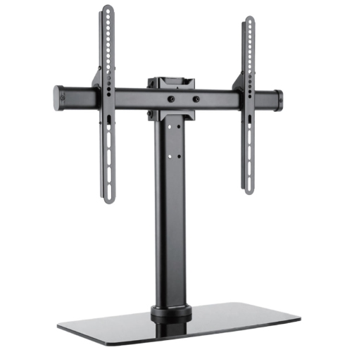 For TVs 32"~55” and max 88 lbsVESA 50×150 to 400×400 mmUniversal swivel and tilt TV stand bracketSwivel ±45º / Tilt +5º-103-Level height adjustment by 3” incrementsElegant glass baseSecurity Locking DeviceCable management