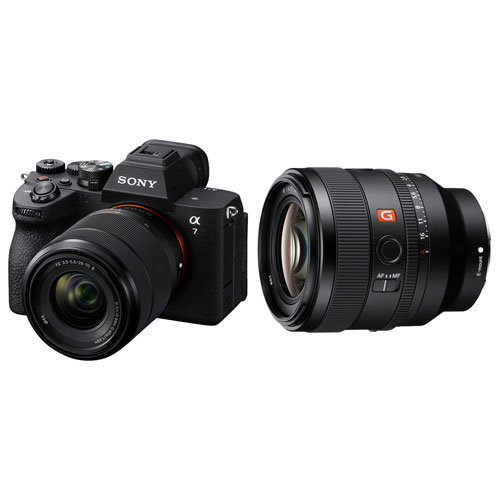 Capture brilliance in every frame with the Sony Alpha 7 V camera, 28mm-70mm lens kit, and Sony E-Mount full-frame FE 50mm master lens bundle.