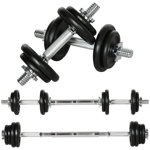 Soozier 44lbs 2-in-1 Adjustable Weight Barbell & Dumbbells Set, Free Weights Set with Non-Slip Handles for Home Gym Training, Black