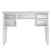 Grace your entryway with this elegantly mirrored console table. Its beveled mirrored finish, silver painted trim, and crystal style knobs add a glamorous touch to any room. Five drawers offer an assortment of space to keep entryway or vanity items in their place. The beveled mirror top adds depth to accessories and décor, from flowers or vases to framed art. This console is the perfect alluring piece to complete even your living room or dressing area.Features:L...