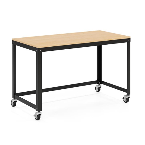 Space Solutions 48" W Mobile Metal Desk with Laminate Top - Black/Maple