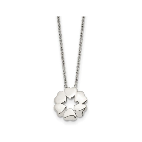 Stainless Steel Polished CIrcle Hearts Pendant Necklace with Chain (18.5 Inches)