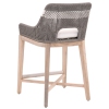This woven outdoor counter stool will add a touch of coastal style to your backyard or patio. Constructed with a stainless steel frame and solid gray teak legs, this stool is not only sturdy, but durable for outdoor use. A rich dove colored rope is tightly woven with an eye-catching solid white speckle stripe interwoven at the center of the seat back. The gray teak legs feature crossed leg stretchers, a front foot rest, and a beautiful wood grain finish. Paired with a ...
