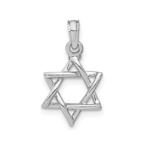 A beautiful symbol of your faith and heritage, this Star of David pendant is exquisitely crafted in glimmering 14 karat white gold. This small star of david charm is a 1/2 inch in length and 1/2 inch in width with an approximate weight of 0.96 grams.
