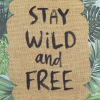 Green foliage outdoor garden flag. Reads stay wild and free. Durable fabric; designed on both sides