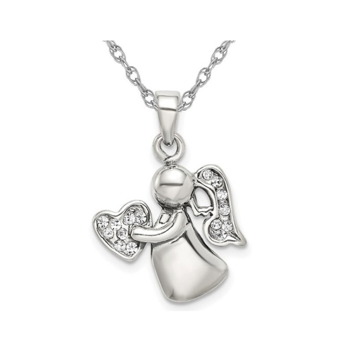 Sterling Silver Angel Charm Pendant Necklace with Cubic Zirconia (CZ)s and Chain