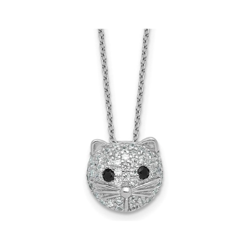 Sterling Silver Cat Pendant Necklace with Cubic Zirconia (CZ)s and Chain