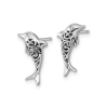 Crisp rhodium plated sterling silver create these cute dolphin charm post earrings with a filigree design in oxidized and polished silver. The silver charm earrings weigh 2.15 grams and are 2/5 inch in length.