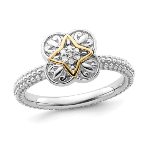 This ring is for those looking for classic styling at the right price. This polished sterling silver ring features a flower motif with tiny pave set accent diamonds for a little extra sparkle.