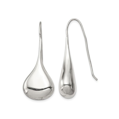 These fashionable earrings create a cute casual pair of drop earrings. Crafted from sleek polished sterling silver, these are the right earrings at the right price. These silver dangle drop earrings weigh 5.10 grams and are 1 1/2 inches in length and have a french wire backing.