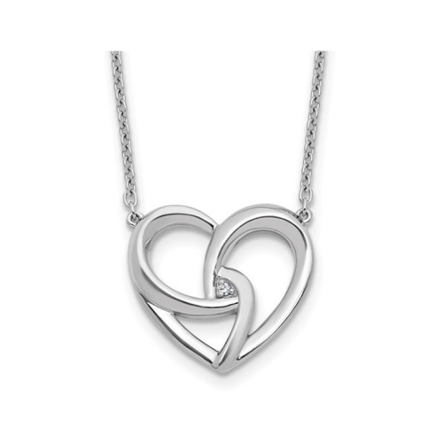 Elegant and alluring, this multi-twist heart pendant is beautifully crafted in polished sterling silver and is adorned by the sparkle of one delicate round accent diamond at its center. The perfect way to declare your love, this endearing pendant and chain set is sure to make her smile. The charm is 3/4 inches in length and width and weighs 4.70 grams.