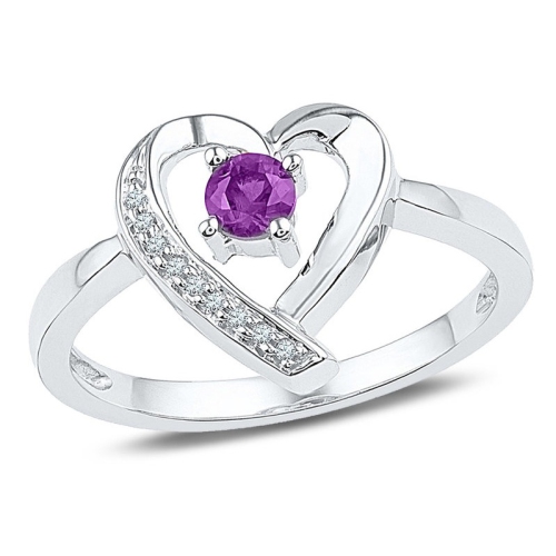 Sterling Silver Lab Created Amethyst and Accent Diamond Heart Promise Ring 1/5 Carat (ctw)