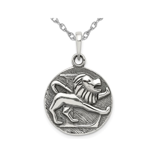 Sterling Silver LEO Charm Zodiac Astrology Pendant Necklace with Chain