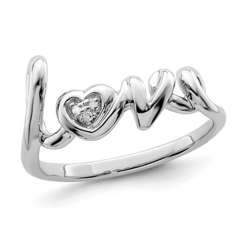 Sterling Silver LOVE Heart Ring with Accent Diamond