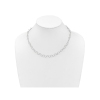 This unique sterling silver necklace has a interlocking heart inspired design and is 18 inches in length. The silver necklace weighs 6.00 Grams and is 1/4 inch thick.
