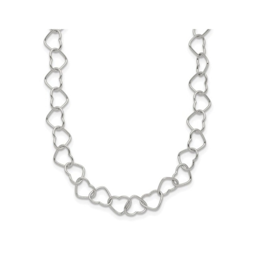 Sterling Silver Polished Fancy Heart Link Necklace (18 inches)