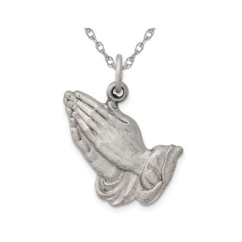 Sterling Silver Praying Hands Pendant Necklace with Chain