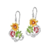 Sterling Silver Red, Green and Yellow Enamel Flower Dangle Earrings