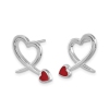 Sterling Silver Red Resin Heart Button Post Earrings