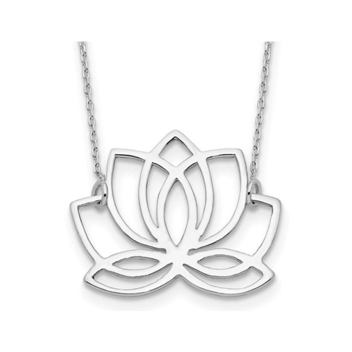 Sterling Silver Rhodium-plated Polished Lotus Flower 18 inch Necklace