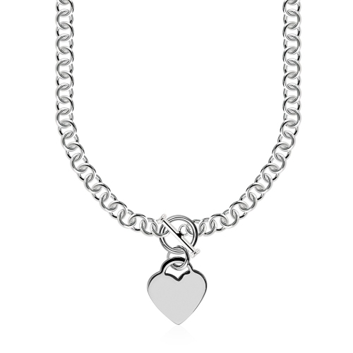 Sterling Silver Rolo Chain with a Heart Toggle Charm and Rhodium Plating