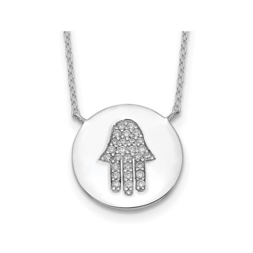 Sterling Silver Round Hamsa Pendant Necklace with Chain and Cubic Zirconia (CZ)s