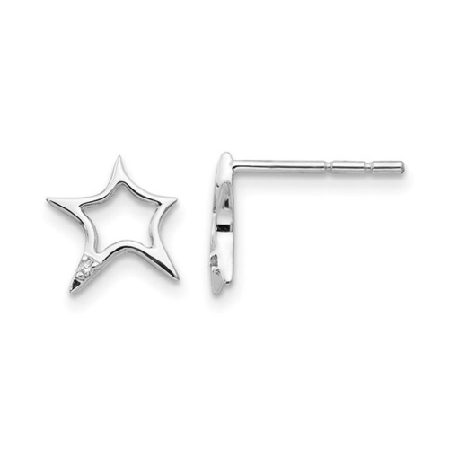 Unique and stylish, these charm star post earrings are crafted in glimmering sterling silver. Add a chic touch to your everyday attire with this affordable pair! These silver earrings weigh 0.74 grams and are 4/5 inches in length. Each earring has sparkling accent diamonds within the heart shaped center.