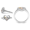 A simple open heart motif crafted from polished sterling silver with 3 dainty cute hearts at its center each in a different metal color. This silver ring weighs 1.85 grams and has 12 tiny accent diamonds to complete the look.