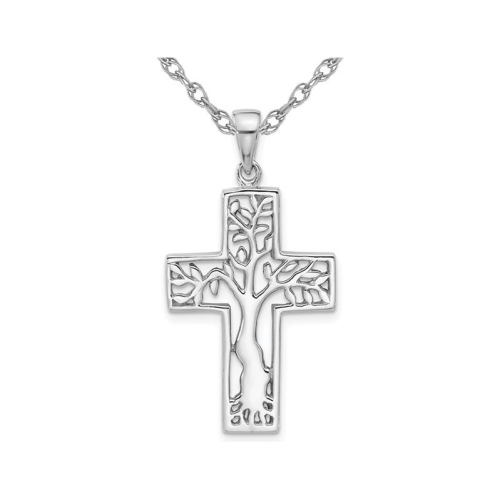 Sterling Silver Tree in Cross Pendant Necklace with Chain