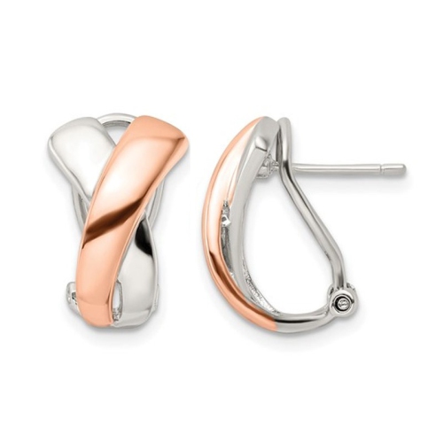 Sterling Silver with Rose Plating Omega J-Hoop Earrings