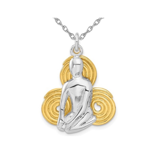 Sterling Silver with Yellow Plating Meditation Yoga Charm Pendant Necklace with Chain