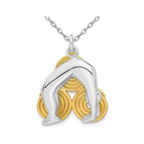 Sterling Silver with Yellow Plating Yoga Pose Charm Pendant Necklace with Chain