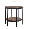 The Ultimo End Table is constructed using stylish mixed media in an eye catching hexagonal shape. The top is accented by a hexagonal veneer pattern and a lower shelf is perfect for storage or display. Finished in mocha with a rustic iron base, this piece will add style and functionality to any room.Features : Iron, MDF, Ash VeneersConstructed of ash veneers with iron baseUnique hexagonal shape and veneer patternMoch...