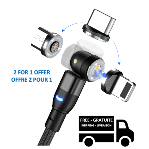 No need to remove your charging cable! Simply leave the magnetic tip in your compatible Apple, Android, or Samsung device, then attach the cable to charge instantly. Protect your phone from wear by never unplugging it! The Stimula Lifestyle Professional Rotating Magnetic Charging Cable features a USB-A to Type-C, Micro, and Lightning nylon cable with 3 interchangeable heads. BONUS: 2 FOR 1! Perfect for iPhone, AirPods Max, and more!