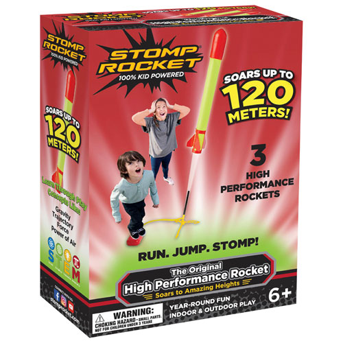 Stomp Rocket The Original High Performance rocket makes playtime exciting and educational. Perfect for active outdoor play, the set includes three rockets and an adjustable launch stand. Rockets can be launched as high as 400ft., which is about the length of a football field. It helps children explore gravity, force, and STEM concepts through hands-on discovery.