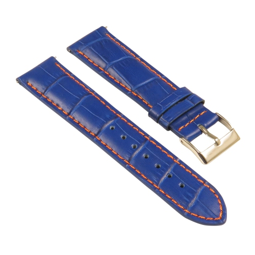 StrapsCo Crocodile Embossed Men's Croc Leather Watch Band - Quick Release Strap - 18mm Blue & Orange