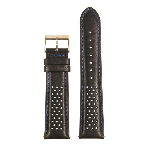 StrapsCo Perforated GT Rally Racing Leather Watch Band - Quick Release Strap - 20mm Black & Blue